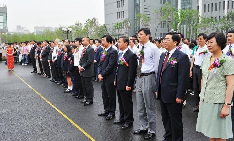 虽然天降细雨,但是8点左右,参加仪式的人员已经陆续到场,匡亚明楼前人头攒动。8时30分,仪式正式开始,党委书记陈德文和校长展涛共同为匡亚明楼揭幕,当巨大的红幕从匡亚明楼上缓缓滑落的时候,在场所有人鼓掌并持续良久。在刚刚揭幕的匡亚明楼前,匡亚明之子匡榕榕先生、校长展涛为匡亚明先生塑像揭幕,全体人员向塑像鞠躬致敬,并由学生代表为匡亚明塑像敬献花篮,以表达吉大人对匡亚明先生的缅怀与崇敬。