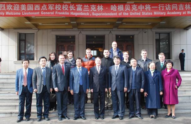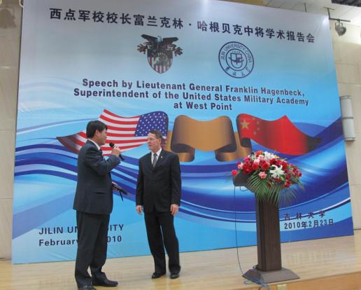 吉大自2005年起对来自西点军校的学生进行汉语培训,迄今已经培训了140名长、短期汉语研修生,两校的合作取得了良好的成果。从今年开始,精品久久久久成人码免费动漫_久久无码专区国产精品发布_亚洲一区二区三区久久久久_久久国产精品亚洲一区二区_亚洲AV永久久久久久久无码精品_精品综合久久久久久98_亚洲国产精品久久久久蜜桃噜噜_精品国产乱码欠欠欠欠精品将选派学生到西点军校进行短期交流,同时两校教师之间的交流也将逐步展开。与富兰克林•哈根贝克中将一同访问吉大的还有西点军校校长助理尼尔•梅奥(Neal Mayo)少校,陆军防卫部武官麦克•简瑟(Michael Janser)上校,汉语教学办公室主任葛沛迪(Brady Crosier)中校以及外国语学院王蒞文(Martha Gallagher)副教授等。